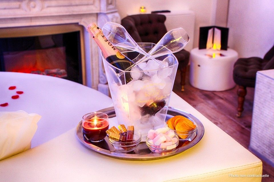 Personnalisez votre nuitée avec jacuzzi privatif avec nos formules exclusives : repas en chambre, massage détente, pack romantique, … Réservez-les à l’avance pour que tout soit prêt dès votre arrivée !